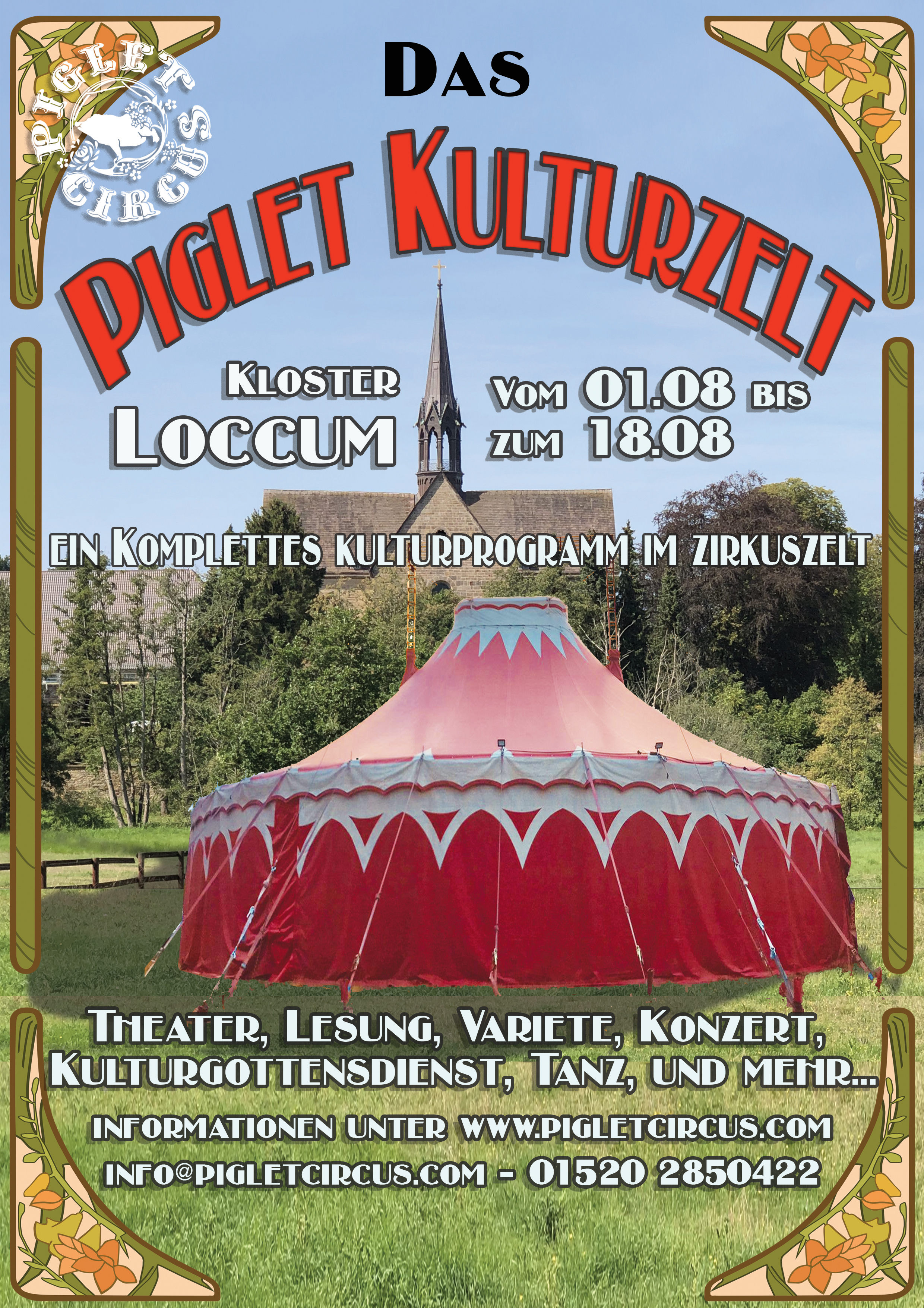 Das Blasorchester der Freiwilligen Feuerwehr Loccum lädt zu einem Sommerkonzert in das Zirkuszelt des Piglet Circus von Sarah Schwarz auf dem Gelände des Klosters Loccum.